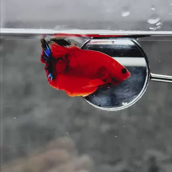 The Hellboy Betta is one of the most iconic and sought-after Plakat bettas. With a blazing red body ❤️ often paired with contrasting black, metallic, or marble patterns, this fish radiates strength and dominance. Bred from premium bloodlines for intense red saturation, sharp form, and a fearless personality, Hellboy doesn’t just swim—it commands attention like a flame in the dark. ⚡
